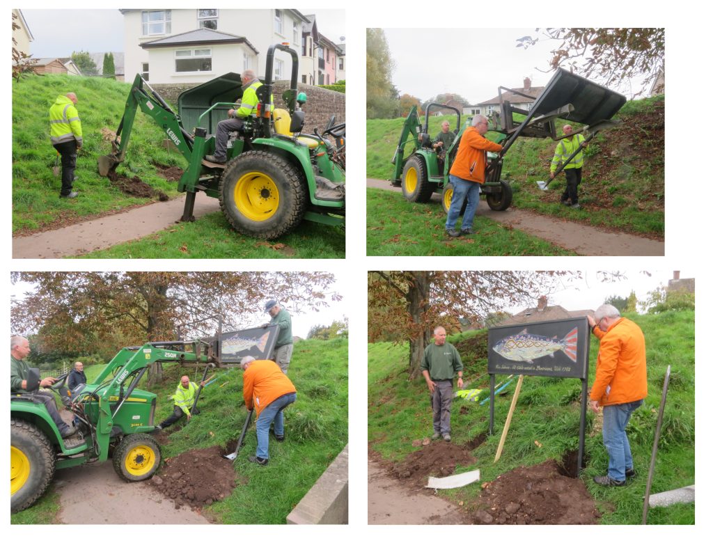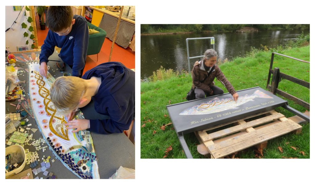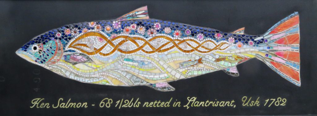 The Society has installed a mosaic of a giant 68.5 lb salmon on the river bank. It was caught near Usk in 1782.